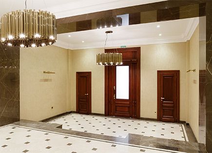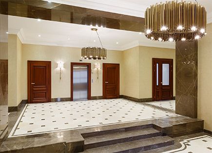 Записаться на просмотрВестибюли и холлы дома выполнены с использованием высококачественных материалов. Напольные мраморные покрытия, лестничные ступени из прочного Путиловского камня, поручни и входные двери – отделка из натурального дерева. Атмосферу респектабельности добавляют уникальные украшения интерьера, которые представлены редкими антикварными часами и работами художников XVII–XVIII и начала XX веков.
